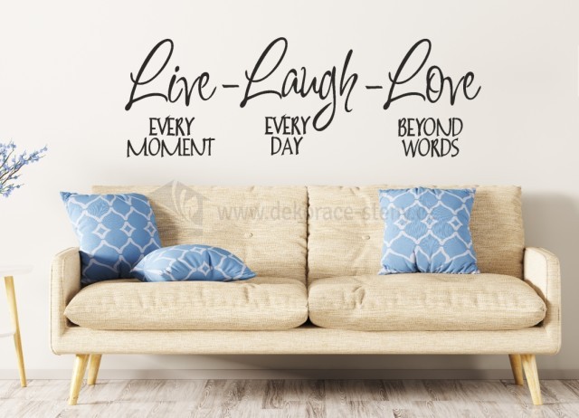 V jednoduchosti je krása a tato stylová samolepka s nápisem "Live - Laugh - Love" to dokonale vystihuje.