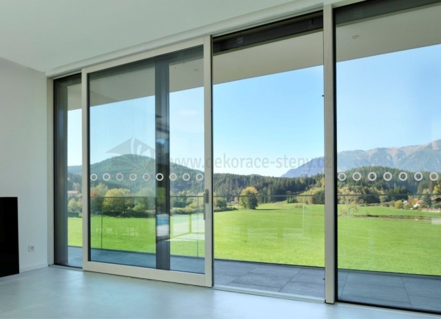Samolepky z kvalitní německé pískované fólie (napodobující mléčné sklo) pro značení prosklených ploch.