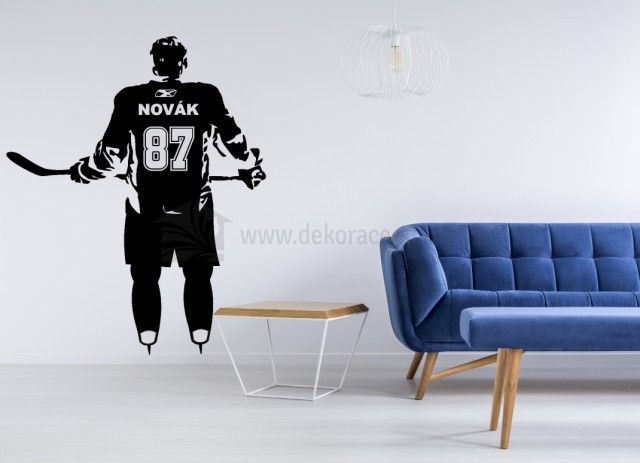 Samolepka v podobě siluety hokejového hráče s vlastním jménem a číslem na dresu!