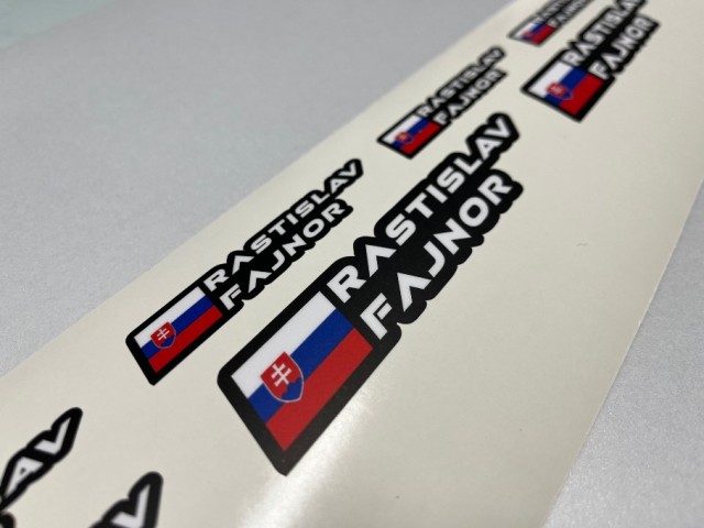 Samolepky jsou tištěny na kvalitní fólii se silným lepidlem včetně laminace pro dlouhou trvanlivost v náročných podmínkách.